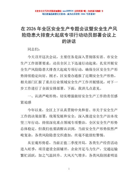 / 在2026年全区安全生产专题会议暨安全生产风险隐患大排查大起底专项行动动员部署会议上的讲话