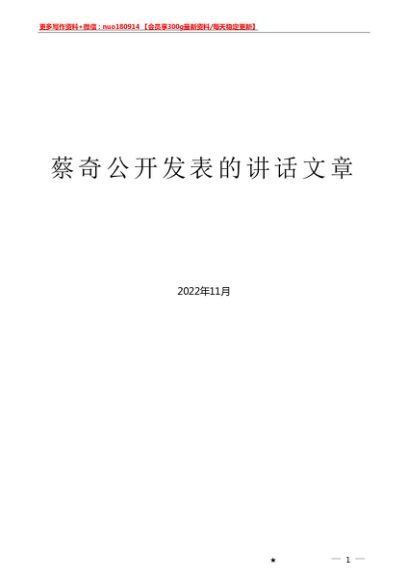 (71篇)蔡奇公开发表的讲话文章
