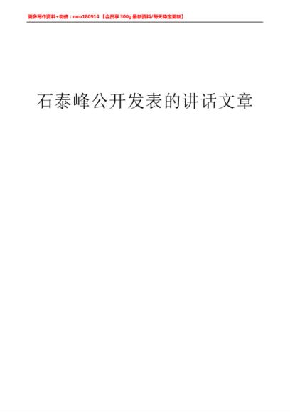 (2022版)“金钥匙”系列№64(133篇)石泰峰公开发表的讲话文章