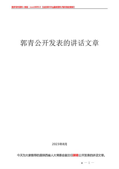 / (2023版)“金钥匙”系列№89(76篇)郭青公开发表的讲话文章