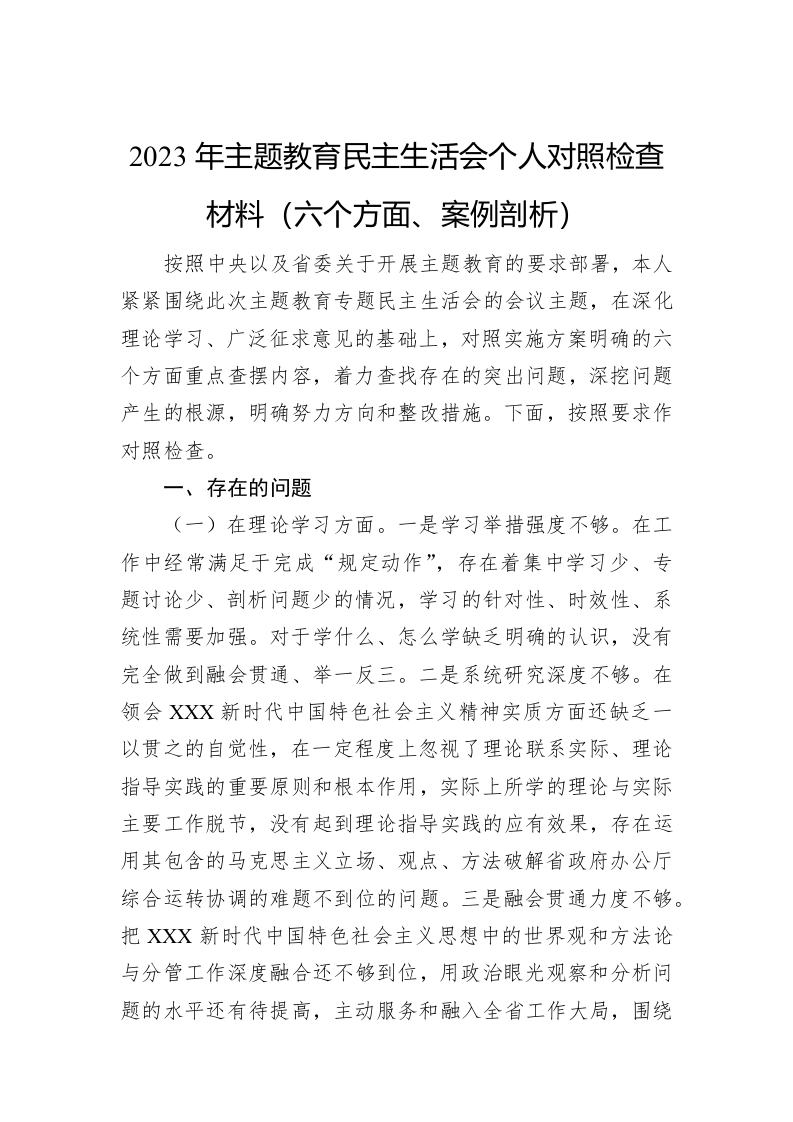 / 2023年主题教育民主生活会个人对照检查材料(六个方面、案例剖析)