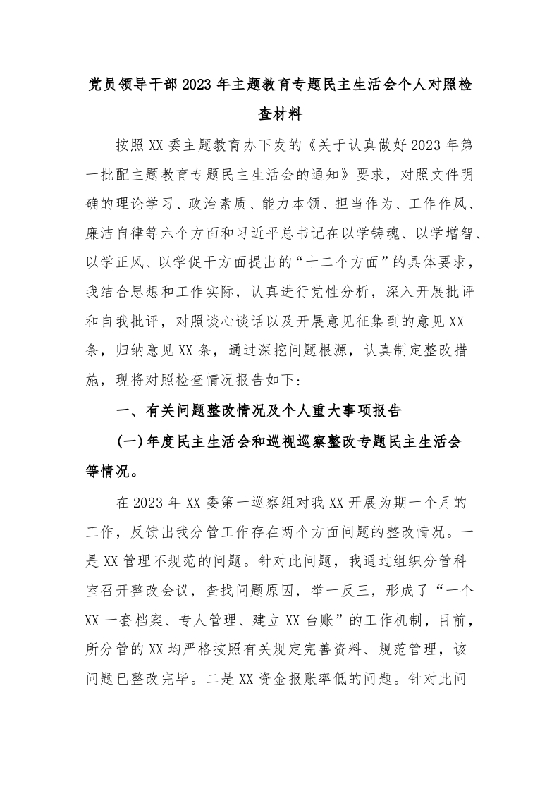 / 党员领导干部2023年主题教育专题民主生活会个人对照检查材料