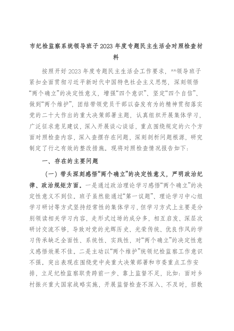 / 市纪检监察系统领导班子2023年度专题民主生活会对照检查材料