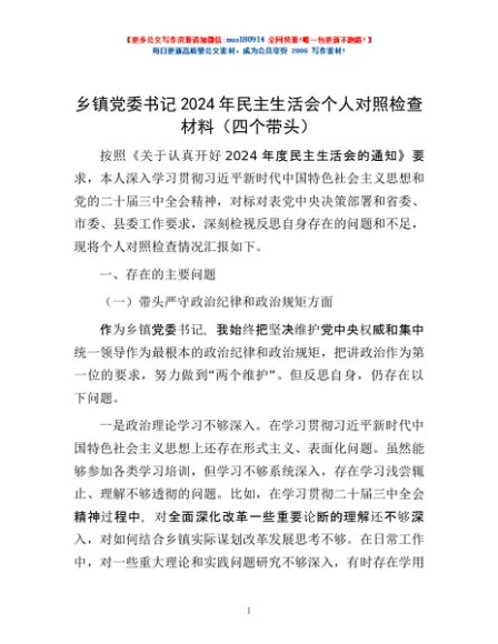 / 乡镇党委书记2024年民主生活会个人对照检查材料(四个带头)