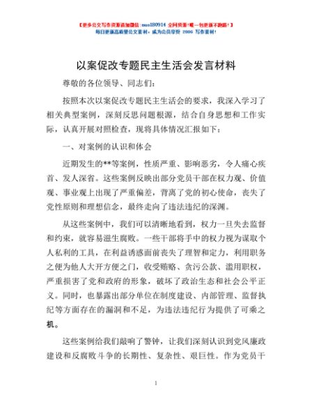 / 以案促改专题民主生活会发言材料