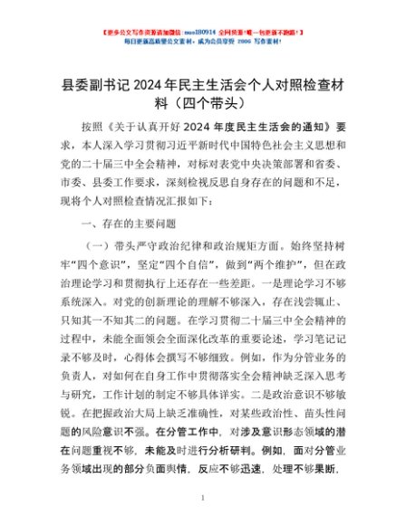 / 县委副书记2024年民主生活会个人对照检查材料(四个带头)