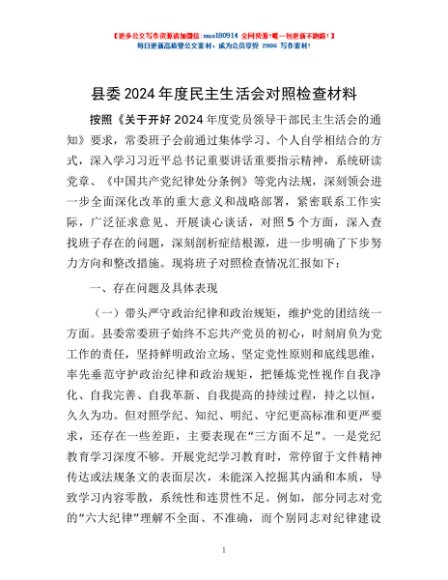 / 县委2024年度民主生活会对照检查材料