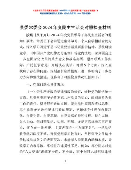 市委组织部长2024年度民主生活会对照检视发言材料(四个带头+以案为鉴)