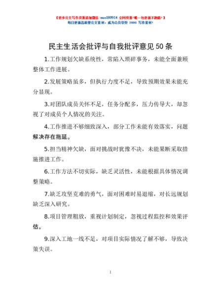 / 民主生活会批评与自我批评意见50条