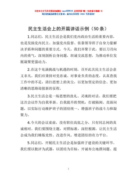 / 民主生活会上的开篇讲话示例(50条)