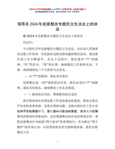 / 领导在2024年巡察整改专题民主生活会上的讲话