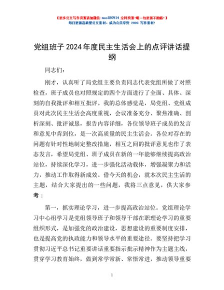 / 党组班子2024年度民主生活会上的点评讲话提纲