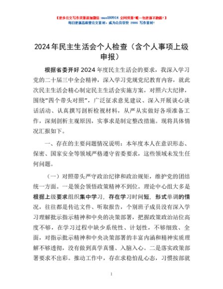 / 2024年民主生活会个人检查(含个人事项上级申报)