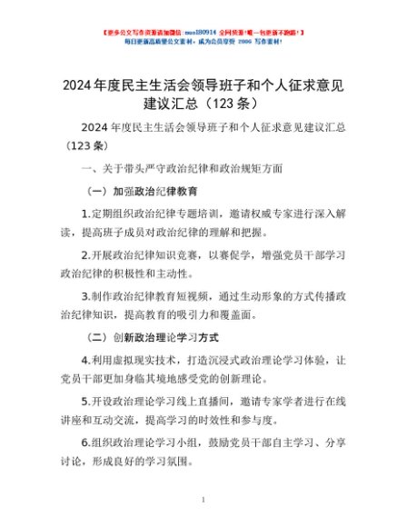 / 2024年度民主生活会领导班子和个人征求意见建议汇总(123条)