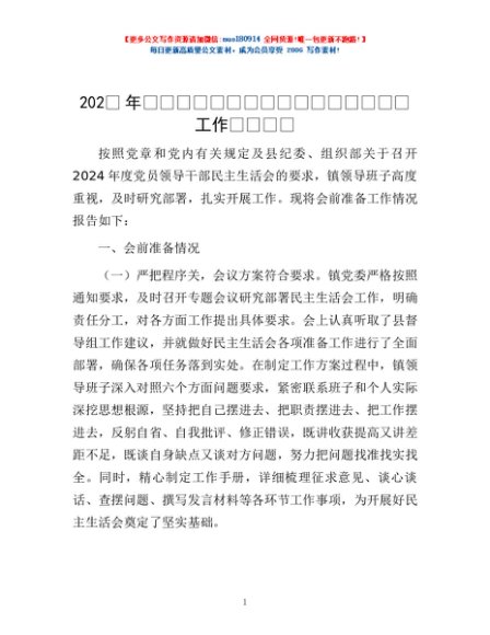 / 2024年度党员领导干部民主生活会会前准备工作情况报告