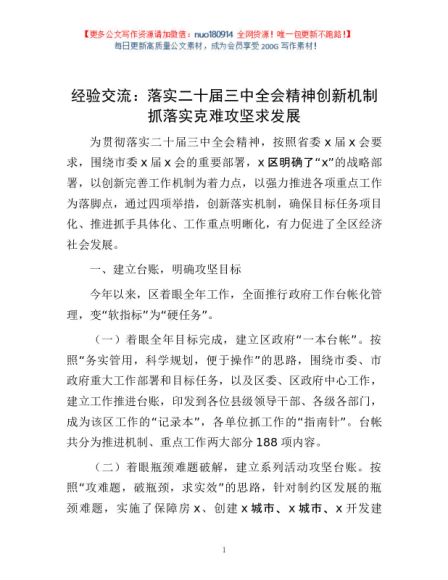 经验交流:落实二十届三中全会精神 创新机制抓落实 克难攻坚求发展