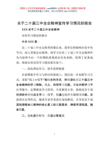 / 关于二十届三中全会精神宣传学习情况的报告