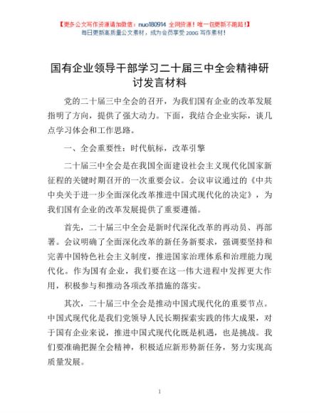 国有企业领导干部学习二十届三中全会精神研讨发言材料