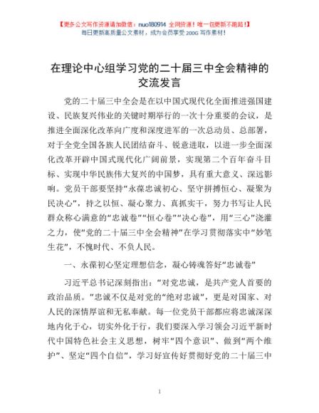 / 在理论中心组学习党的二十届三中全会精神的交流发言