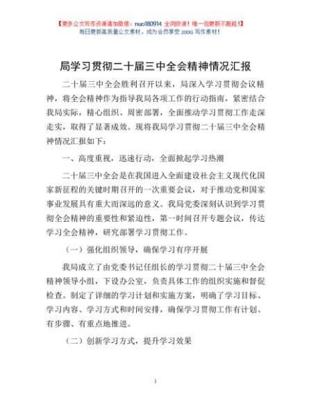 / 局学习贯彻二十届三中全会精神情况汇报