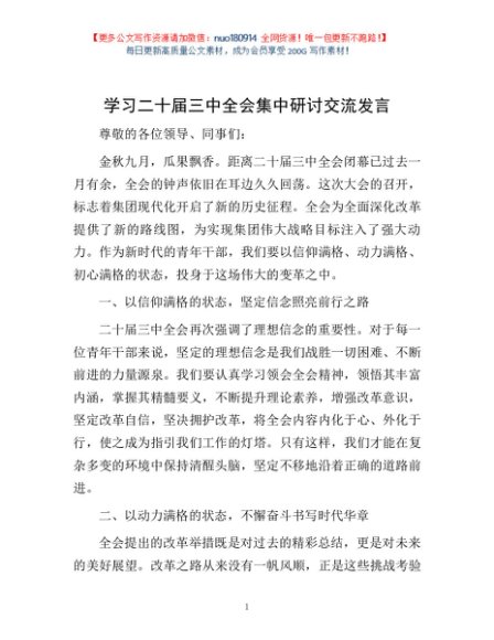 在传达学习党的二十届三中全会精神会议上的发言讲话提纲