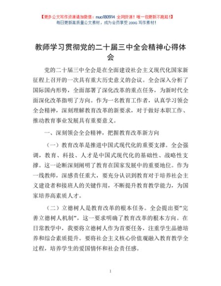 / 教师学习贯彻党的二十届三中全会精神心得体会