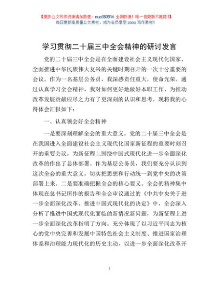 / 学习贯彻二十届三中全会精神的研讨发言