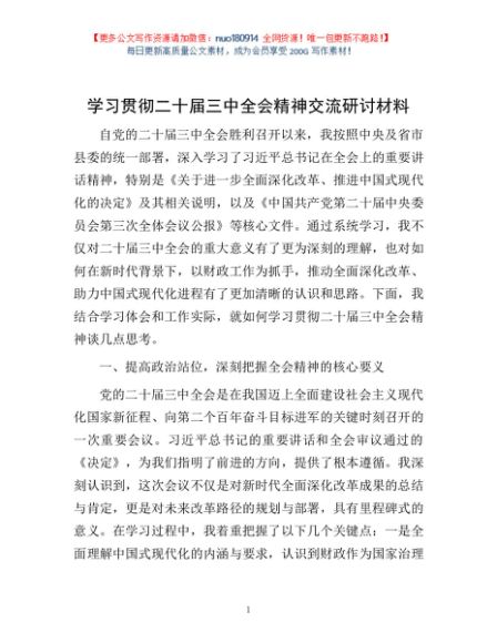 / 学习贯彻二十届三中全会精神交流研讨材料
