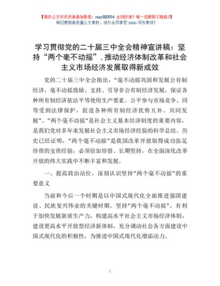 学习贯彻党的二十届三中全会精神宣讲稿:坚持“两个毫不动摇”,推动经济体制改革和社会主义市场经济发展取得新成效