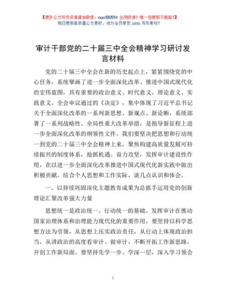 / 审计干部党的二十届三中全会精神学习研讨发言材料