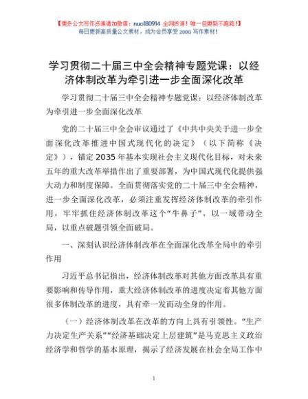 / 学习贯彻二十届三中全会精神专题党课:以经济体制改革为牵引进一步全面深化改革