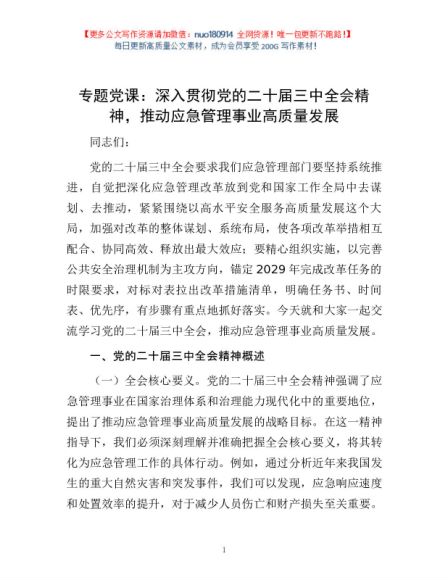 / 专题党课:深入贯彻党的二十届三中全会精神,推动应急管理事业高质量发展