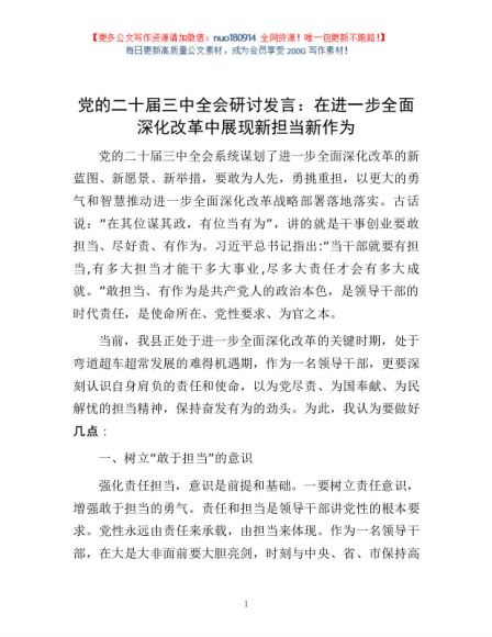 / 党的二十届三中全会研讨发言:在进一步全面深化改革中 展现新担当新作为