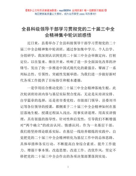 / 全县科级领导干部学习贯彻党的二十届三中全会精神集中轮训班感悟