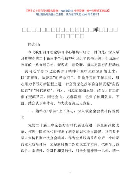 / 关于党的二十届三中全会精神理论学习中心组研讨发言提纲