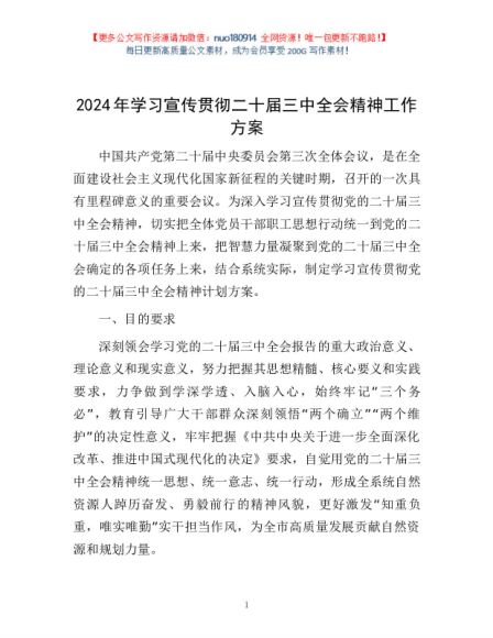 / 2024年学习宣传贯彻二十届三中全会精神工作方案