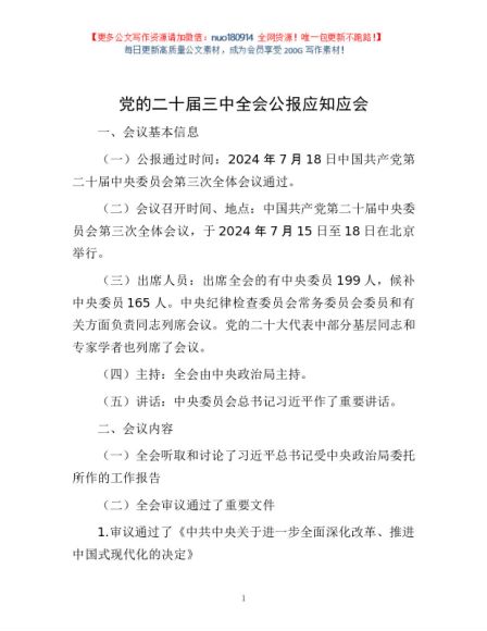 党的二十届三中全会公报应知应会