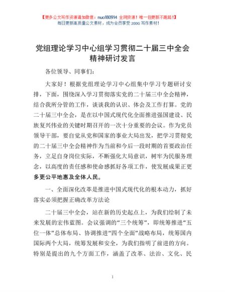 / 党组理论学习中心组学习贯彻二十届三中全会精神研讨发言