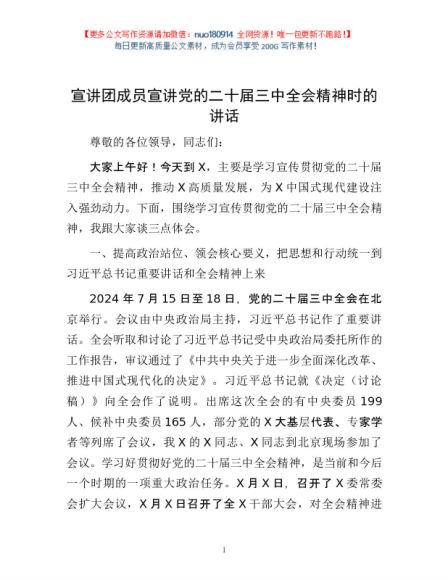 宣讲团成员宣讲党的二十届三中全会精神时的讲话