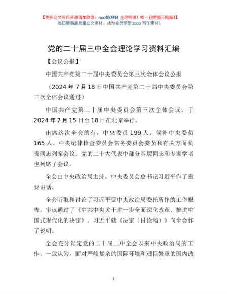 党的二十届三中全会 理论学习资料汇编