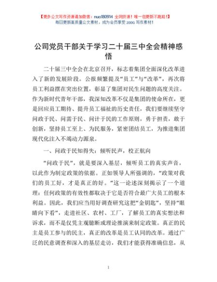 / 公司党员干部关于学习二十届三中全会精神感悟