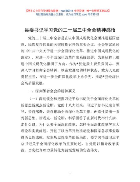 / 县委书记学习党的二十届三中全会精神感悟