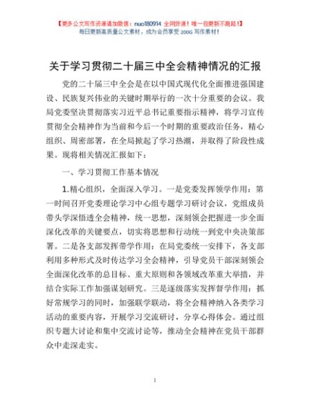 / 关于学习贯彻二十届三中全会精神情况的汇报