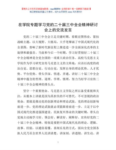 / 在学院专题学习党的二十届三中全会精神研讨会上的交流发言