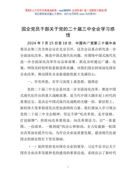 / 国企党员干部关于党的二十届三中全会学习感悟