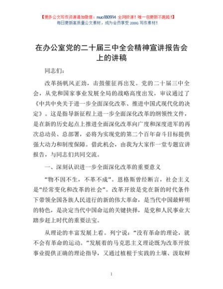 / 在办公室党的二十届三中全会精神宣讲报告会上的讲稿