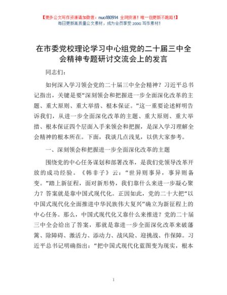 / 在市委党校理论学习中心组党的二十届三中全会精神专题研讨交流会上的发言