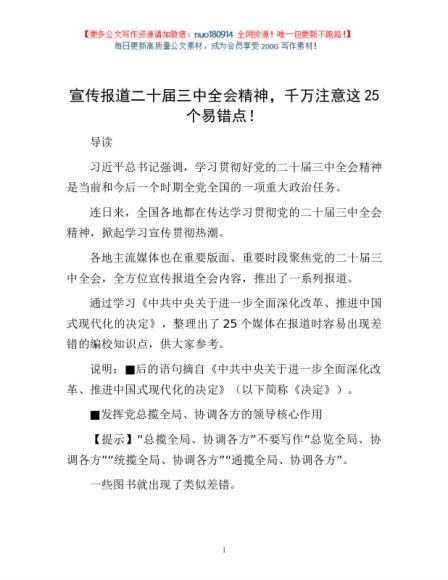 / 宣传报道二十届三中全会精神,千万注意这25个易错点!