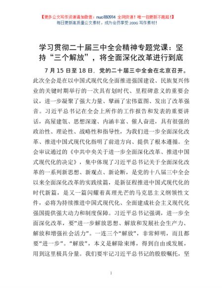 / 学习贯彻二十届三中全会精神专题党课:坚持“三个解放”,将全面深化改革进行到底