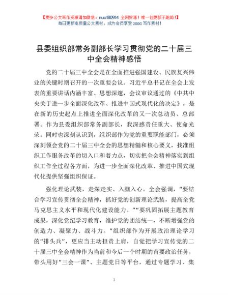 / 县委组织部常务副部长学习贯彻党的二十届三中全会精神感悟
